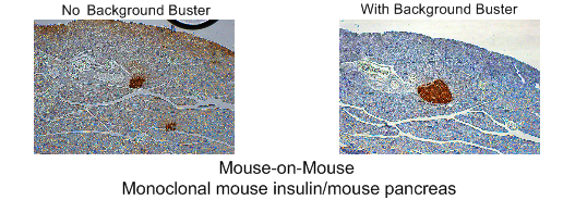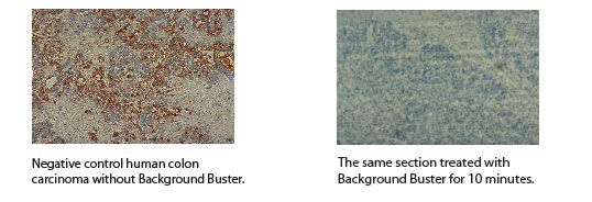 Background Buster is a diverse and powerful RECOMBINANT PROTEIN TECHNOLOGY for eliminating general background staining in tissues and cell preparations stained with antibodies in immunohistochemistry or with DNA or RNA probes for in-situ procedures. It also makes possible the staining of mouse antibodies on mouse tissues.